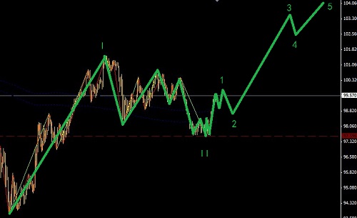 先看美元的波浪理論圖解,美元指數的多頭趨勢沒有改變,每一個低位都是好的進場位,做不做得到取決于你的執行力和對美元的把握,眼前走完了A-B-C,右側開始1浪,今天非農數據多半利好,如果利好的數據下來反而是好的進場機會。