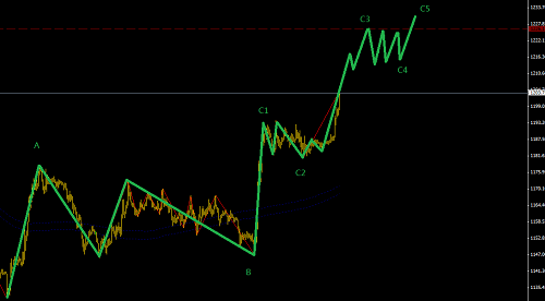1160開始上漲到1214 是三波起頭的,對于3波起頭又豈能武斷認為是1浪呢,當然1浪3波起頭也是允許的。所以我們暫且認為是A浪3波不為過,之后若是能發(fā)展成驅動浪了,再把它看成是1浪也沒問題,但是無論怎么看,跟當前趨勢回落做多并不違背不是么?
